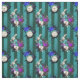 This bold, vibrant Alice in Wonderland inspired design has the white rabbit, clocks, and roses on a teal and dark green vertical stripes background.