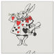 A character from the fairytale story, Alice in Wonderland. The white rabbit is wearing a robe or garmet with the suit of cards of hearts, and is holding a trumpet horn. The hearts are in red and black on white. Keep as is or customise.