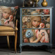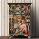 Protective Blue Chinoiserie Alice Flamingo Tissue Paper | Nursery Craft Décor. This gentle blue chinoiserie tissue paper design features a thoughtful moment between Alice and a pink flamingo, inspired by the classic Wonderland tale. Alice stands in quiet defiance, shielding the flamingo from its usual croquet fate, her gingham dress and soft expression set against a stylised floral backdrop. A calm yet story-rich image for nursery crafts, fairy tale bedroom décor, or for covering furniture during creative upcycling projects.