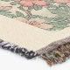 A quality printed throw has its advantages. This is a much finer weave throw than its loopier cousins, and though lighter, it is worth the investment for custom room accessorizing. The back is much prettier than the typical brown, and the fringe on the long sides very vivid, the selvage nicely done. Before photographing, I washed the throw in cold water, delicate, with a thicker woven throw the same size. On tumble dry low, this throw was dry in half the time as the other. This is a very practical quality if you use throws for furniture covers or to wrap up in frequently. The sleekness of the fabric makes it a great layer for accenting or protecting without the feeling of sitting on too much stuff. Perfect for napping or when you feel a light chill coming on. The color printing is beautiful and on this fabric, matched the design and color of my Photoshop image. This is an advantage for blending room fabrics and colors. The fringe on the short sides prints the colors from the design image and therefore varies from the side fringe. I streaked a white fractal line through the plaid pattern to give the illusion of weaving. This printed as crisp as an illusory thread, and put some white in the short side fringe, showing another advantage of print vs loomed- for artistic purposes, line lines, detail, and color integrity can be planned and preserved. My loomed throws have color limitations and more of a needlepoint texture. Print throws reproduce an exact image. The throw felt a little stiff straight out of the package, but this went away in the first delicate wash. Of course I searched the wash water for ink or bleeding and there was none.
