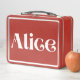Alice Metal Lunch Box. For an Alice, this cute lunch box says Alice in a contemporary font. No one will get confused about whose lunch box it is!