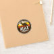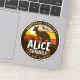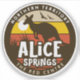 A bold, vintage-inspired sunset design celebrating Alice Springs, in the red center of Australia. This round artwork features a striking silhouette of a kangaroo in the scrub with a vintage sunset background.