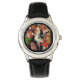 Vintage Alice in Wonderland on a black background with the characters of the story all around her. Colourful art/illustration.