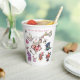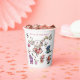 Step into a whimsical world with this enchanting 'Alice in Wonderland' inspired paper cup, perfect for any birthday celebration. Featuring the iconic White Rabbit playing his horn amidst a delightful assortment of tea party elements like stacked teacups, a Mad Hatter's hat, and playing cards. The charming watercolor illustrations bring a touch of magic to your party, with the playful phrase 'We're all mad here!' adding a quirky touch. Ideal for themed parties, tea parties, or anyone who loves a bit of delightful madness. Make your next birthday gathering unforgettable with this unique and festive design.