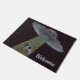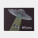 A colour pencil drawing of an unfortunate cow being abducted by aliens in a flying saucer on a dark, starry night. The frightened herd huddles in the background.