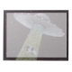 A colour pencil drawing of an unfortunate cow being abducted by aliens in a flying saucer on a dark, starry night. The frightened herd huddles in the background.