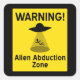 Warning ! - Alien Abduction Zone - warning sign humour in yellow and black with space ship and unfortunate stick figure.
