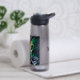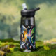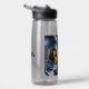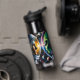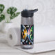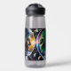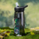 Personalised water bottle. Alien and astronaut in space doing a stare down. Background of stars and planets.