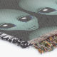 A quality printed throw has its advantages. This is a much finer weave throw than its loopier cousins, and though lighter, it is worth the investment for custom room accessorizing. The back is much prettier than the typical brown, and the fringe on the long sides very vivid, the selvage nicely done. Before photographing, I washed the throw in cold water, delicate, with a thicker woven throw the same size. On tumble dry low, this throw was dry in half the time as the other. This is a very practical quality if you use throws for furniture covers or to wrap up in frequently. The sleekness of the fabric makes it a great layer for accenting or protecting without the feeling of sitting on too much stuff. Perfect for napping or when you feel a light chill coming on. The color printing is beautiful and on this fabric, matched the design and color of my Photoshop image. This is an advantage for blending room fabrics and colors. The fringe on the short sides prints the colors from the design image and therefore varies from the side fringe. I streaked a white fractal line through the plaid pattern to give the illusion of weaving. This printed as crisp as an illusory thread, and put some white in the short side fringe, showing another advantage of print vs loomed- for artistic purposes, line lines, detail, and color integrity can be planned and preserved. My loomed throws have color limitations and more of a needlepoint texture. Print throws reproduce an exact image. The throw felt a little stiff straight out of the package, but this went away in the first delicate wash. Of course I searched the wash water for ink or bleeding and there was none.