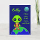 A colourful Friendly Alien with the sentiment "I love you to the moon and back!" Inside "Happy Birthday to my favourite earthling!" Text can be customised to suit your occasion.
