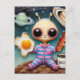 A funny Alien dressed in PJs with a coffee and bacon and egg for breakfast adorable AI generated art