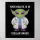Bring a touch of extraterrestrial care to your space with this poster featuring a friendly alien doctor in a professional uniform. With a stethoscope around its neck, this alien healthcare professional is ready to take care of your well-being. The playful text "Your Health is in Stellar Hands" adds a fun, cosmic twist to your home or office decor. Perfect for sci-fi lovers, medical enthusiasts, or anyone who loves a unique, out-of-this-world design.