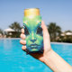 Extraterrestrial can cooler. A captivating otherworldly design with an extraterrestrial alien being with big bulging eyes holding the reflections of other planets, including earth in them.