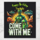Two vividly coloured alien figures stand together, depicted in a dynamic pose. One is tall and muscular, while the other is smaller, exuding a friendly vibe.