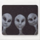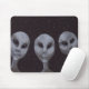 A colour pencil drawing of three Alien Grey ETs against a starry black sky.