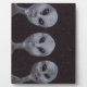 A colour pencil drawing of three Alien Grey ETs against a starry black sky.