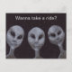 A colour pencil drawing of three Alien Grey ETs against a starry black sky adorns this customisable postcard!