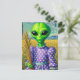Alien in a Polka Dot Dress in Wheat Field Postcard