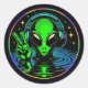 Alien in Headphones giving Peace Sign Classic Round Sticker