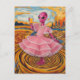 An alien lady dressed in pink and pearls with a glass of orange juice AI generated