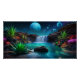 Alien planet with Waterfall, growing plants textured rocks and a many moons