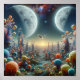 Immerse yourself in this captivating artwork depicting an alien planet adorned with strange, luminescent vegetation and two moons gracing its sky. The surreal landscape invites viewers into a mysterious world, sparking imagination and wonder.