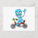 alien on tiny bicycle postcard