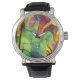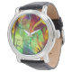 Alien fire Opal abstract on this Watch. Alien like view of panes of painted glass in swirls of colours reminiscent of fire opal, vivid blue,green,yellow, red, orange and purple