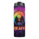 Alien "peace" tie dye space thermal tumbler! You can "personalise" it with your name, message, or keep it as it is: peace. Features an alien with peace sign, tie dye round frame, and cool space background for stickers and decals.