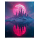 Alien Retro-Futuristic City with Neon Pink Moon Poster