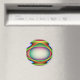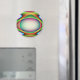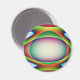 This magnet features a multicoloured pattern of bright psychedelic colours surrounding a central egg shaped structure. It resembles a fantasy of an alien spaceship ready to abduct an earthling.