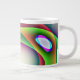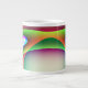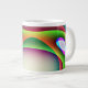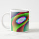 This awesome mug features a multicoloured pattern of bright psychedelic colours surrounding a central egg shaped structure. It resembles a fantasy of an alien spaceship ready to abduct an earthling.