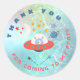 Alien Spaceship Thank You teal Birthday Favour Classic Round Sticker