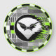 ATTENTION EARTHLINGS! Cool retro TV testcard inspired design featuring a stylised alien face and extra-terrestrial interference in shades of black, white, grey and green. A customisable design for you to personalise with your own text, images and ideas. An original digital art image created by Jess Perry.