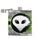 ATTENTION EARTHLINGS! Cool retro TV testcard inspired design featuring a stylised alien face and extra-terrestrial interference in shades of black, white, grey and green. A customisable design for you to personalise with your own text, images and ideas. An original digital art image created by Jess Perry.