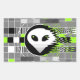 ATTENTION EARTHLINGS! Cool retro TV testcard inspired design featuring a stylised alien face and extra-terrestrial interference in shades of black, white, grey and green. A customisable design for you to personalise with your own text, images and ideas. An original digital art image created by Jess Perry.