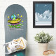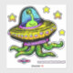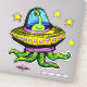 This super cute alien sticker has a happy smiling green alien looking out of a ufo as it floats through the stars, in outer space. Tentacles poke out of the flying saucer. This original art was hand drawn with ballpoint gel pen, then coloured digitally.