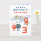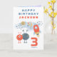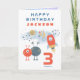 Send a 3 year old fan of outer space birthday wishes with this spaceship, cute alien characters and moon and stars design on a white background. Easily personalise the text to your own requirements.