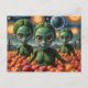 A group of aliens have landed in a weird field of apples that somehow has cactus growing in it as well
