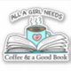 Cute cartoon hand drawn graphics of a hot cup of coffee and a good book. All a girl needs.