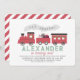 This cute "all aboard" Christmas holiday 1st/first birthday invitation features a white background with steam train in red. The reverse side features a white background with red diagonal stripes. Personalise it for your needs. You can find matching products at my store.