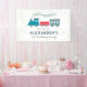 This cute "all aboard" boy's birthday welcome sign banner features a white background with steam train in blue and red. Personalise it for your needs. You can find matching products at my store.