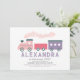 This cute "all aboard" girl's 1st/first birthday invitation features a white background with steam train in pink and purple. The reverse side features a pink background with cloud patterns. Personalise it for your needs. You can find matching products at my store.