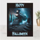 The spectral conductor asks for your ticket as you board the ghost train into the haunted dark forest. Add your own personalised text.
