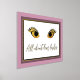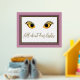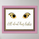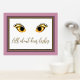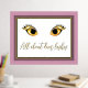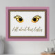 Fashion foil print featuring a glamourous set of eye lashes set on a white background, with gold foil frame and dusty rose matte style frame around the outside. Gold foil text reads All about dem lashes, and can be personalised to read what you want.