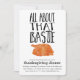 Because you know I'm all about that baste, bout that baste! Invite your loved ones to Thanksgiving dinner with these punny pop culture invitations. Design features "All About that Baste" in black handwritten-style typeface with a watercolor turkey illustration. Matching items, including our bestselling apron, available in our shop!