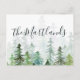 ALL ABOUT THE NAME FULL PHOTO HOLIDAY POST CARD WITH WATERCOLOR WINTER FOREST DETAILING. PART OF A COLLECTION.