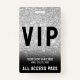 This VIP badge features a bold faux silver white glitter background, perfect for a concert, birthday party, bachelorette, fashion show, and more. Along the top, silhouettes of palm trees stretch across the sparkling backdrop, adding a fun and glamourous vibe. At the bottom, a soft silver gradient helps the text pop, with your event name, date, and “All Access Pass” in clean white and black fonts. “VIP” appears at the top in the same modern style for a sleek, polished look.