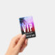 This VIP badge features a colourful and energetic design, perfect for an outdoor concert or a party with a Coachella vibe. At the top, a vibrant mix of blue, pink, red, and purple artwork shows silhouettes of concert-goers and a palm tree in the top left, capturing that lively festival feel. The image fades smoothly into black at the bottom, where the event name, date, and “All Access Pass” are displayed in clean white fonts, with “VIP” bold at the top.