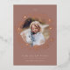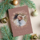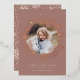 A simple and festive holiday card that frames your favourite photo with fluffy rose gold foil snowflakes in varying sizes. Personalise with the year across the top, and your custom holiday greeting and family name along the bottom. Shown with "Warm Holiday Wishes." An elegant, lighthearted choice in wintry colours and real foil accents for your Christmas 2022 greetings.